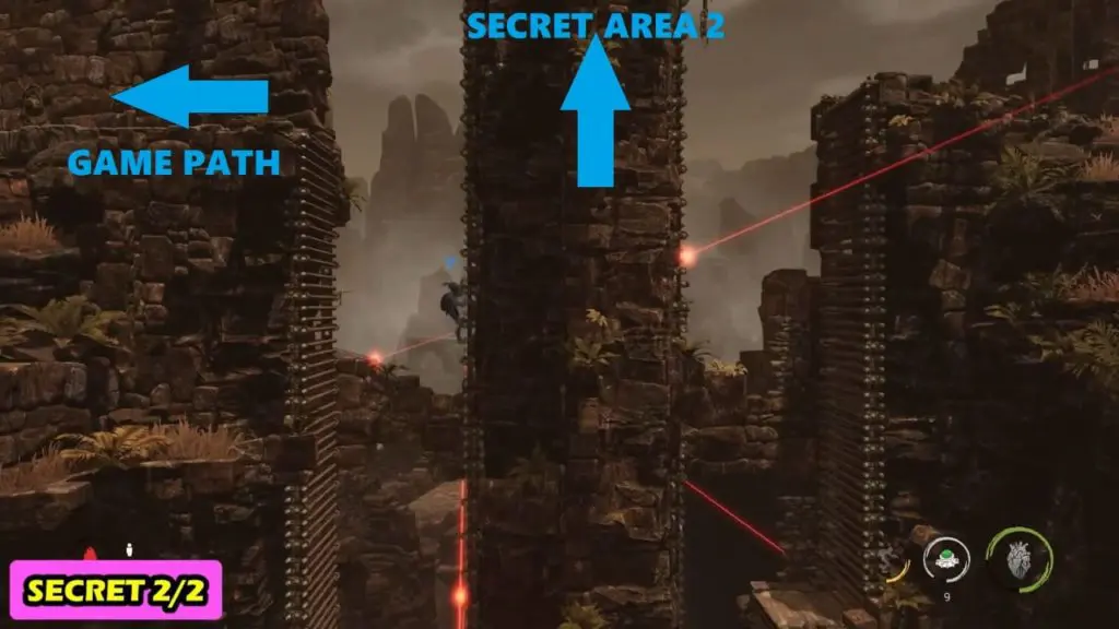 Immediately after the first secret area, you will find series of ladders that are guarded by snipers sitting in a blimp. Make your way down and up these ladders to move onto the next area. However, before you leave, turn around and go to the top’s very last ladder. Here you’ll find the second secret area