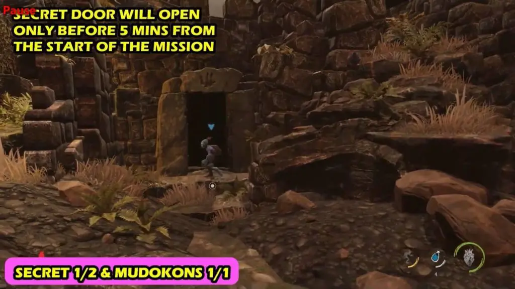 This is one of the tougher ones to get in the entire game, due to the timer. As the level starts, the timer starts ticking, and you have to make it to this area while encountering lots of Sligs and mortar bombs to dodge. The secret door will open only before 5 minutes from start of the level.