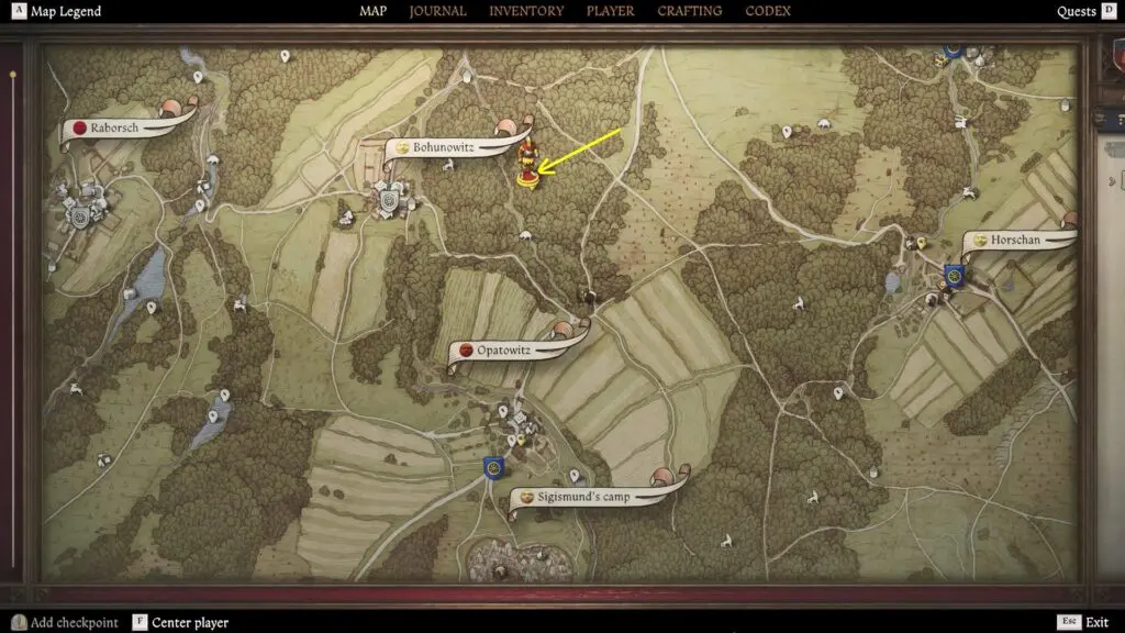 To locate the treasure marked in Kingdom Come: Deliverance II, travel northeast of Bohunowitz in the forest area.