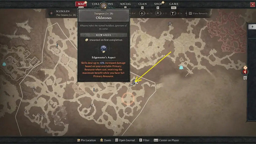 You will get the Edgemaster’s Aspect by completing the Oldstones dungeon. Oldstones is in The Downs in Scosglen at the location shown in the pictures below. Go inside the dungeon and defeat Khazra Abomination to get the Edgemaster’s Aspect.