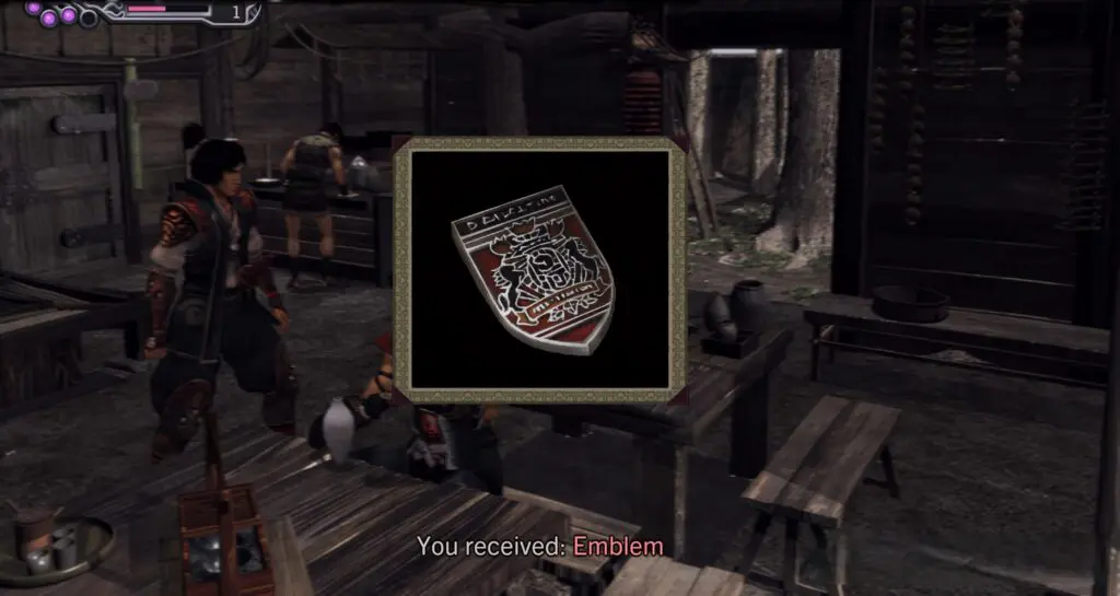 Take the “Tale of the Heike” to Magoichi. Hand it over, and he’ll give you the “Emblem” in exchange