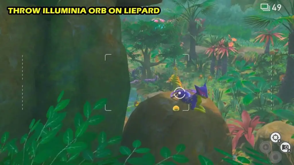 Throw an Orb to make the Liepard jump down, opening up a new path for you.