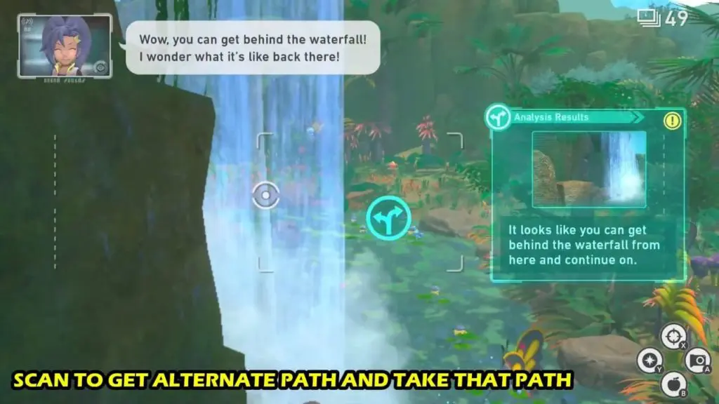 Scan the location to get an alternate route and go through the new path to get behind the waterfall.