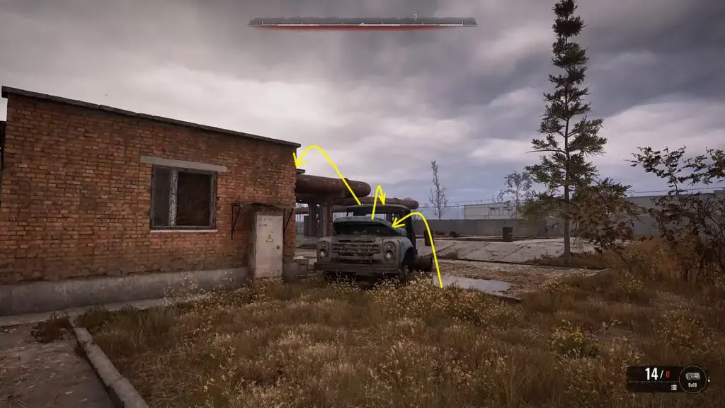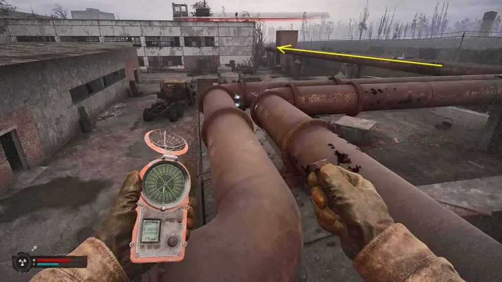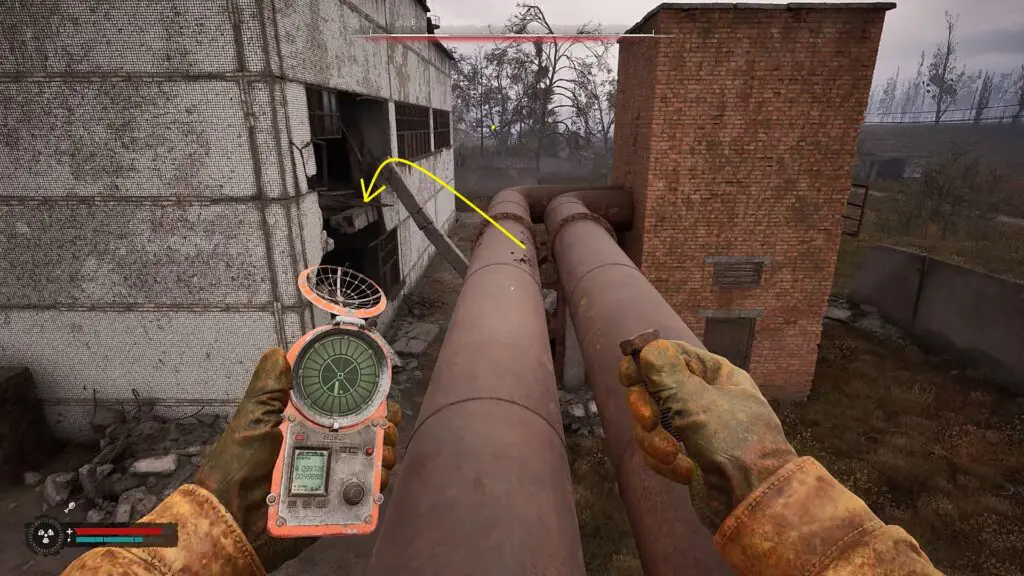 From the pipe, jump to the upper floor of the building next to it as shown in the picture below. Then go inside to find the Operator Exoskeleton. There is one issue with the Exoskeleton armor though, it wouldn’t let you sprint. To be able to sprint, you need to purchase and install a sprint upgrade from the Bolero technician in Prypiat. The upgrade that you need is Hydraulic Amplifiers for Servos.