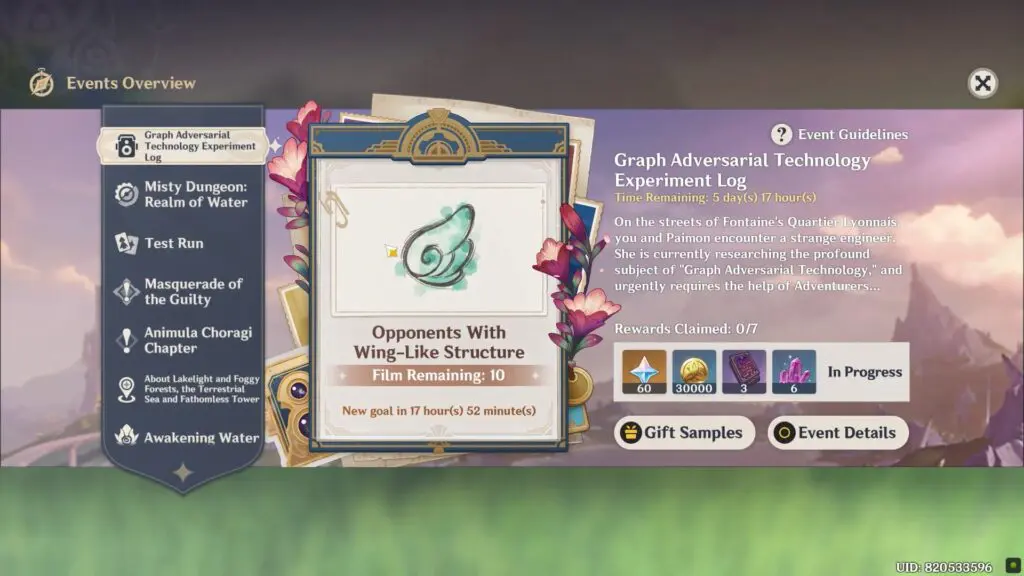 This article will guide you in taking photos of “Opponents With Wing-Like Structures“. It is the goal for Day 1 in the Graph Adversarial Technology Experiment Log Event from Genshin Impact 4.2.