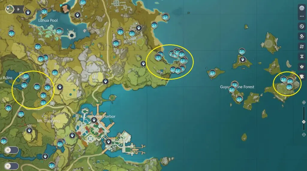 To complete this task, take pictures of Anemo Slimes in Brightcrown Canyon, capturing their images which is wing-like structure. Ensure you find a total of 10 pictures. There are multiple locations to capture Anemo Slimes north of Liyue Harbour. Refer to the few below locations marked on the map.