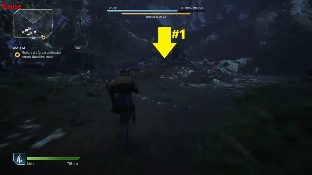 #1 Enoch Biodiversity Report: The Journal is within the camp region. You have to go left to the giant tree, as shown in the image. You can find a journal near a small destroyed camp.
