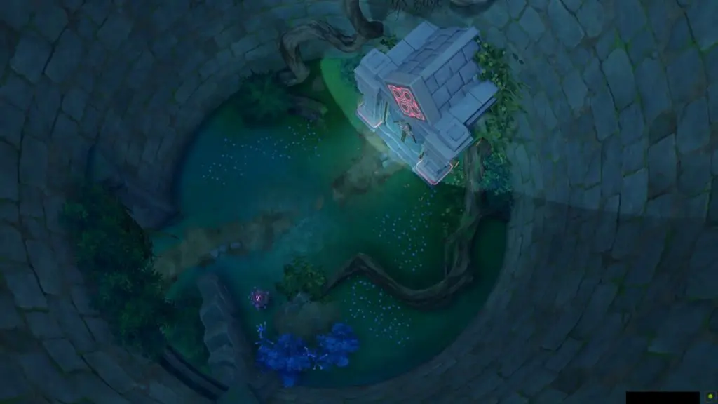 After unlocking the door, enter the next room and climb up the wall on the right side to reach the upper floor. On this floor interact with the switch on the corner as shown below to unflood the pool and reveal the door of the domain. Now you can simply go to the domain entrance and interact with it to unlock the domain.
