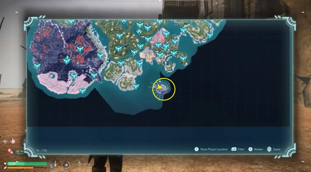 Grizzbolt exclusively inhabits the Pal Sanctuary, positioned southwest of the Plateau of Beginnings waypoint in Palworld. This sanctuary is isolated from the mainland by a substantial body of water, necessitating the use of a flying or swimming Pal for access.