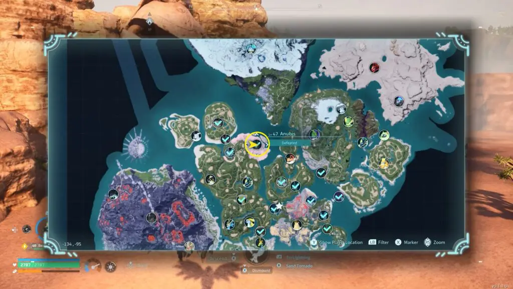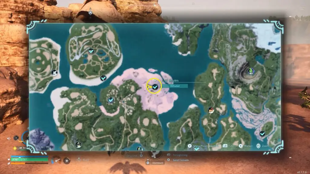 Anubis is exclusively located in the Twilight Dunes. As you navigate the sandy terrain, you’ll encounter a massive statue of this Pal, with a formidable Alpha Anubis residing below.