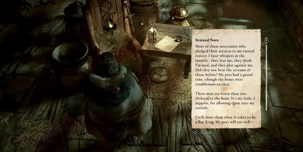 The third and final mystery of Paris is in Le Vieil Arbre at the location as shown in the picture below. At the marked location, go inside the house and kill the enemies. Then break the wooden planks covering a hole in the ground. Jump down the hole and move ahead in a linear path until you reach a big room. In this room, repel the rats into the sewer grates and read the strained note on the table to complete the mystery.