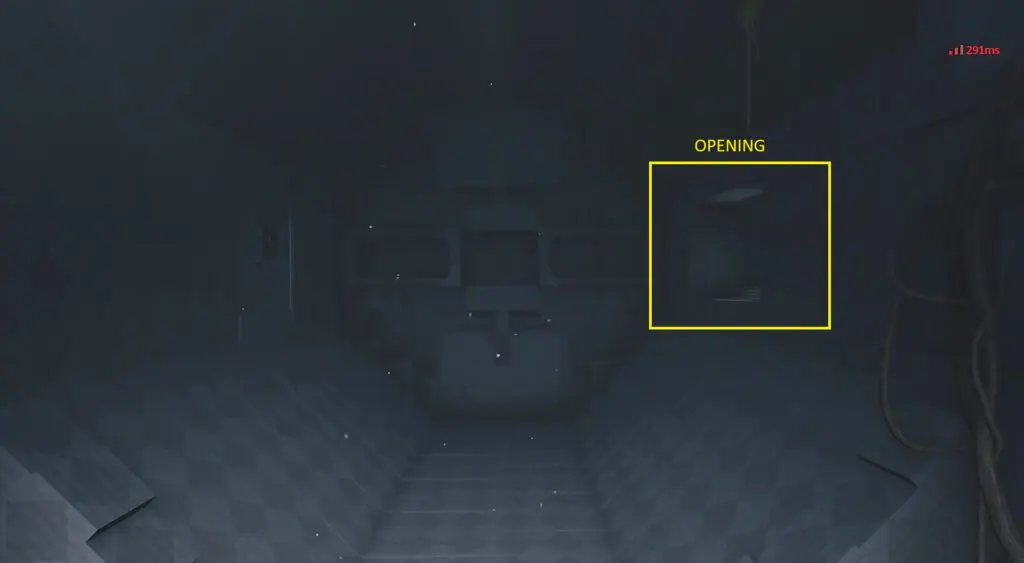 Climb up the stairs after entering the room. Then use the green jumping pad to reach the upper level. There you will find another circular mechanism that will rotate the space ahead. Rotate the space so the opening is on the right side, as shown in the picture below.