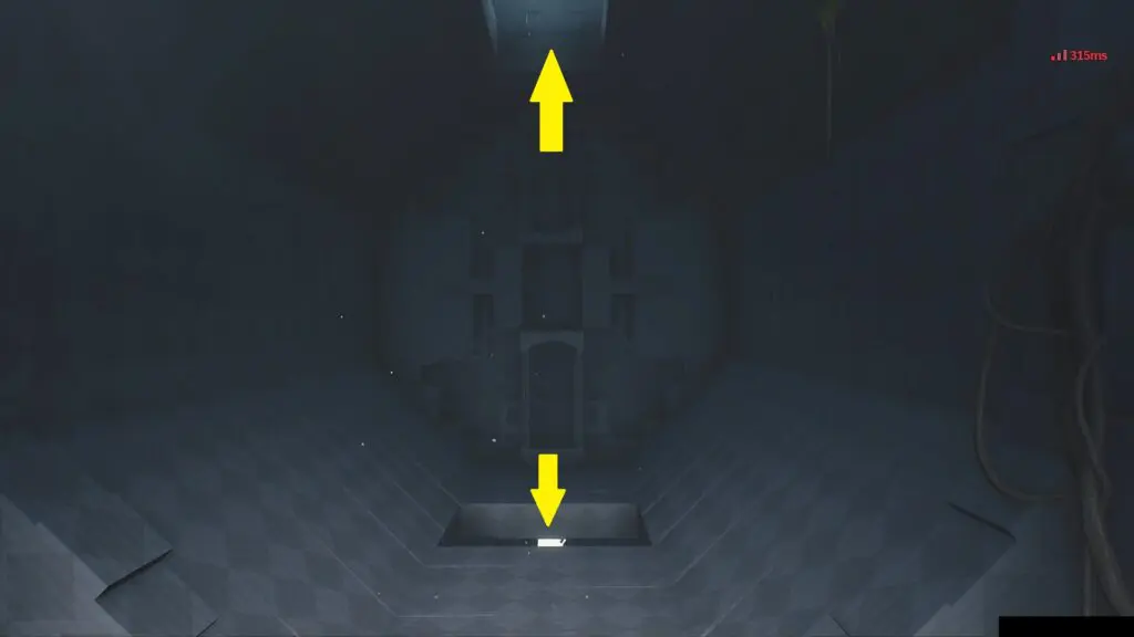 You will encounter your first puzzle as soon as you start the domain. Perform a plunging attack on the top white button, as shown in the picture below. This will make the button black, matching the floor pattern with the door pattern. This will open the door. Proceed ahead through the door to the next room.