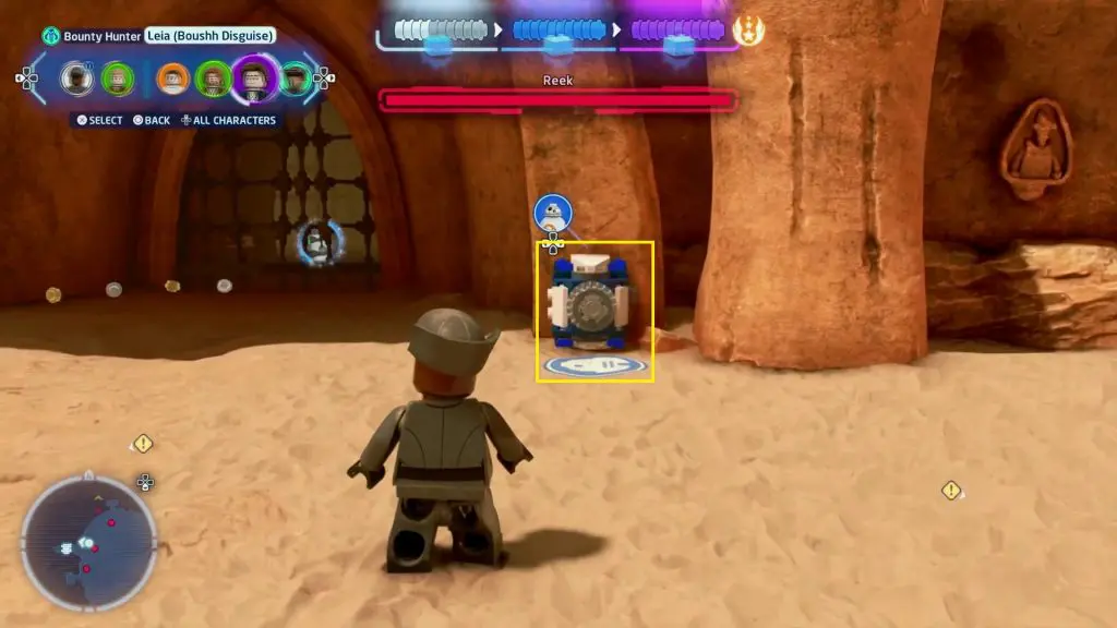 This Minikit is behind an iron gate on the west side. Switch to a droid and use it on the console as shown below to open the gate and get the Minikit.