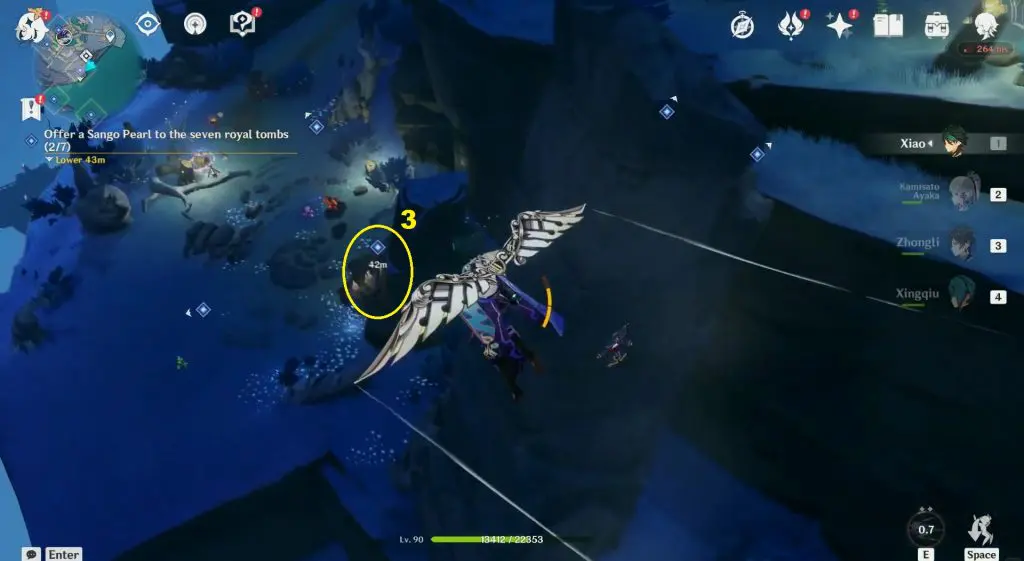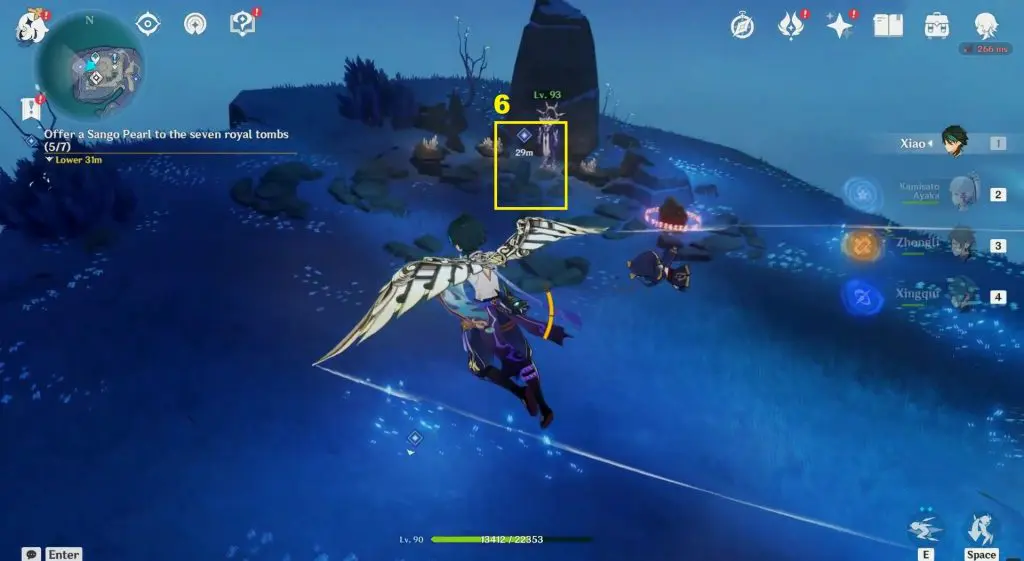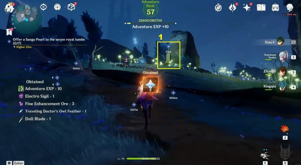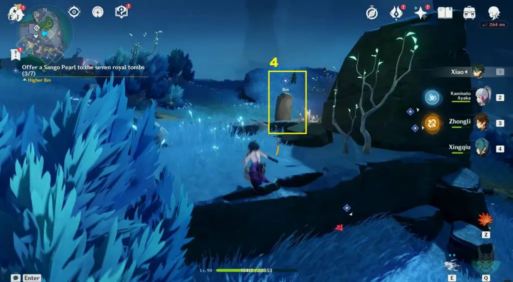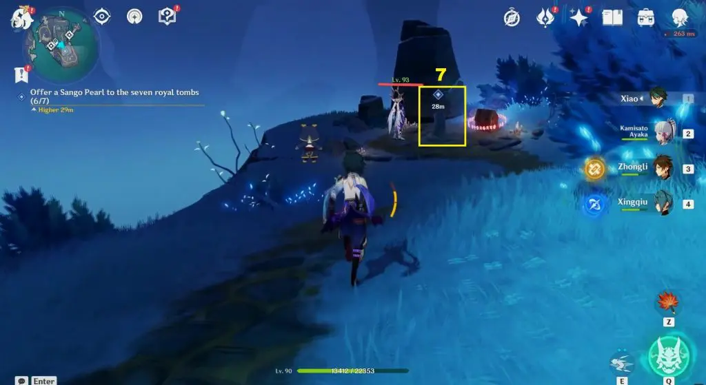 The location of the seven tombs is shown in the pictures below. The tombs are in open areas and are very easy to reach. Interact with the seven tombs and offer Sango Pearl to them to complete the objective.