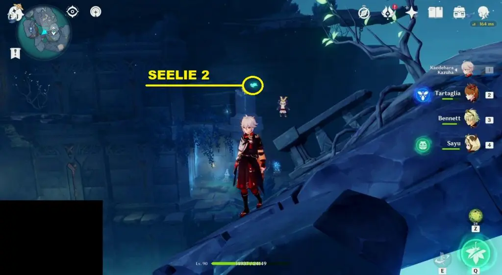 To remove the barrier, you will need to guide two Seelies to their courts in front of the barrier. One of the Seelie is on a broken bridge east of the barrier as shown in the picture below. The second Seelie is a little north of the broken bridge as shown in the second picture below.