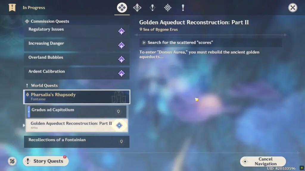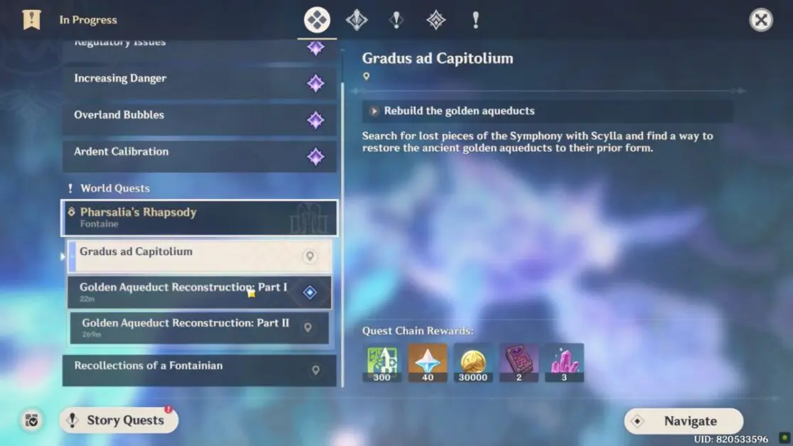 It is the first part of the two-part objective under the Gradus ad Capitolium Quest in Genshin Impact 4.6.