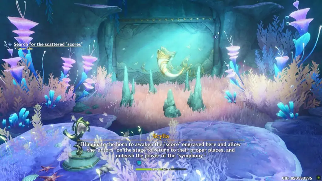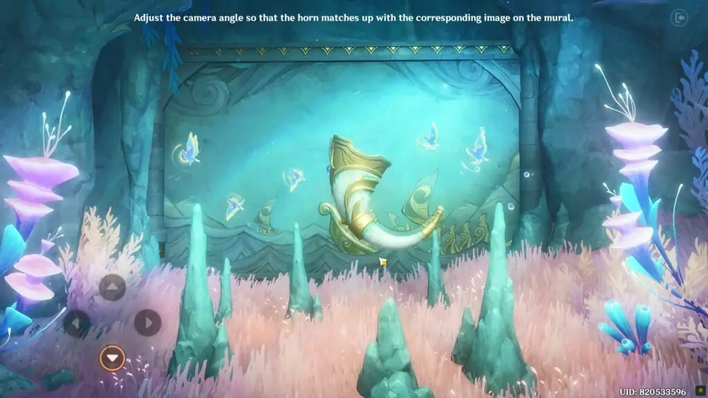 Proceed towards the mural or Scylla. Interact with the device to change the angles of the horn to align with the image of the mural.