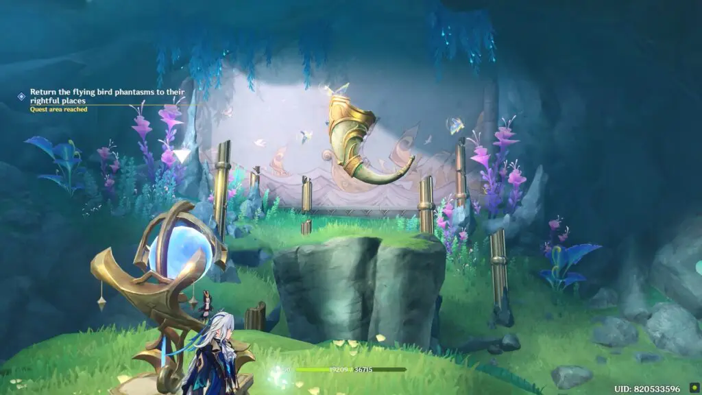 After placing the birds correctly, interact with the device to change the angles of the horn along with 5 Phantasms birds to align with the image of the mural correctly.