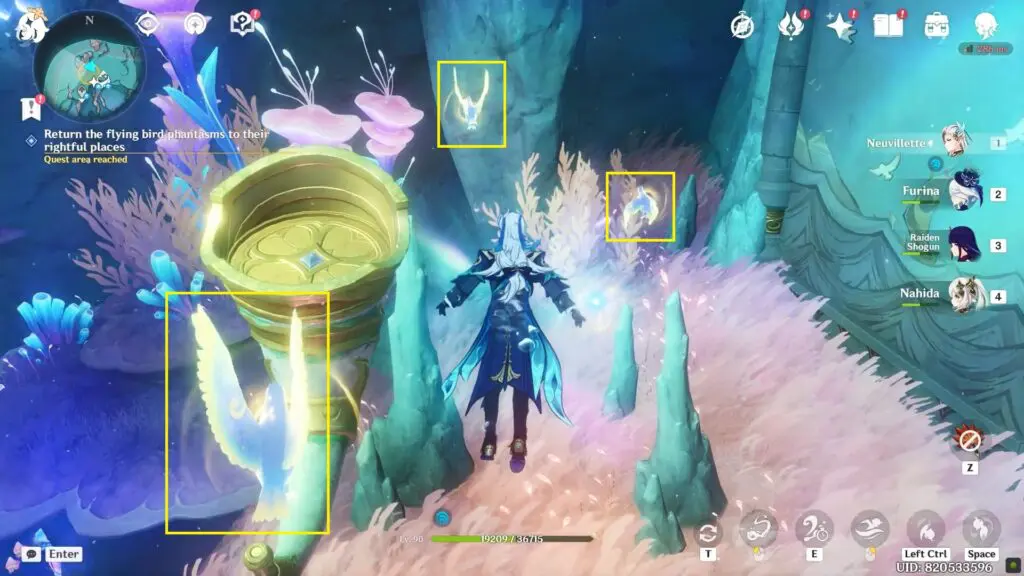 Now go toward these 5 Phantasms birds and follow to guide them towards their correct positions. Once a bird is correctly placed in the mural, their trail of light goes away.