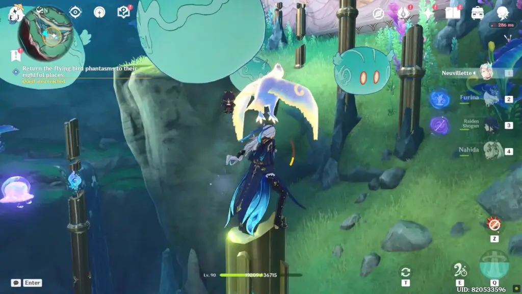 Now go toward these 5 Phantasms birds and follow to guide them towards their correct positions. Once a bird is correctly placed in the mural, their trail of light goes away. Some birds will not move until you remove slimes near them.