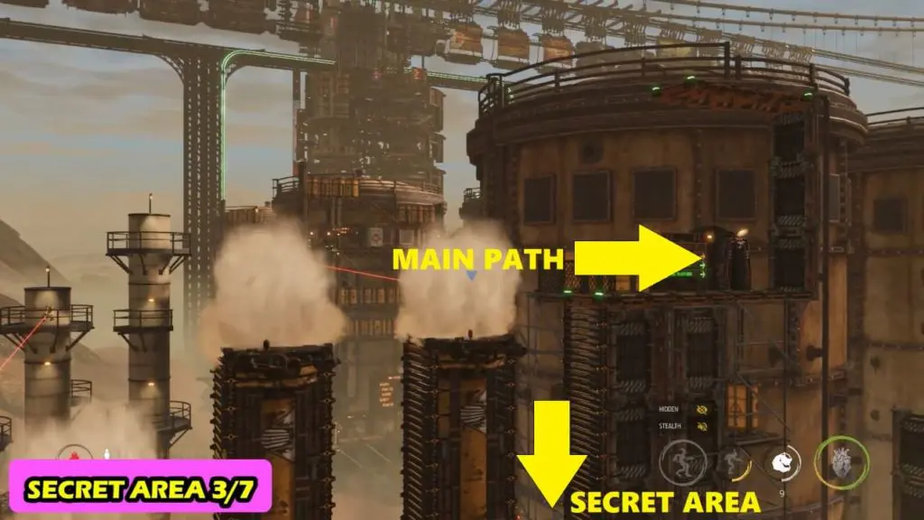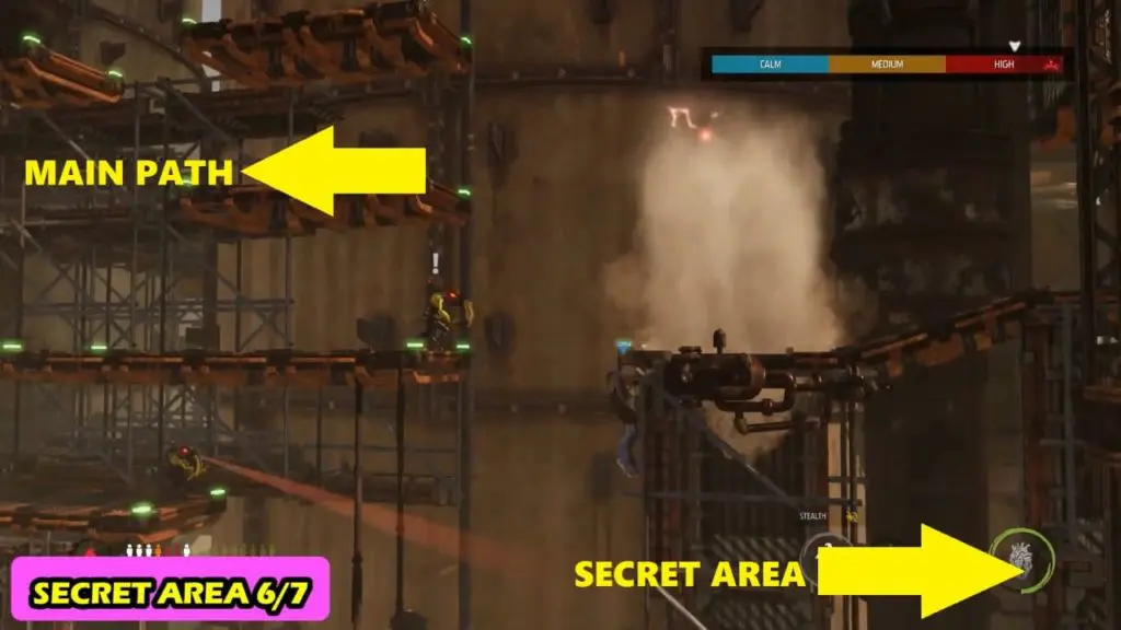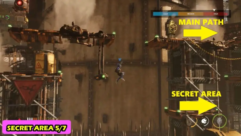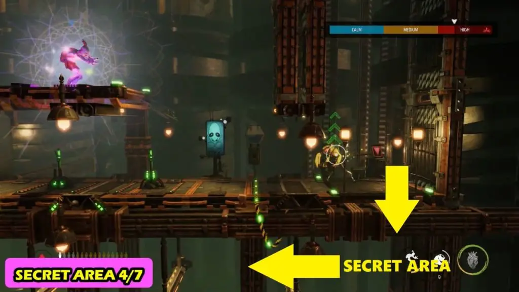 As you move into the next area, you have to encounter multiple steam zone. After the last steam zone, you need to drop down using the ladder to find a secret area.