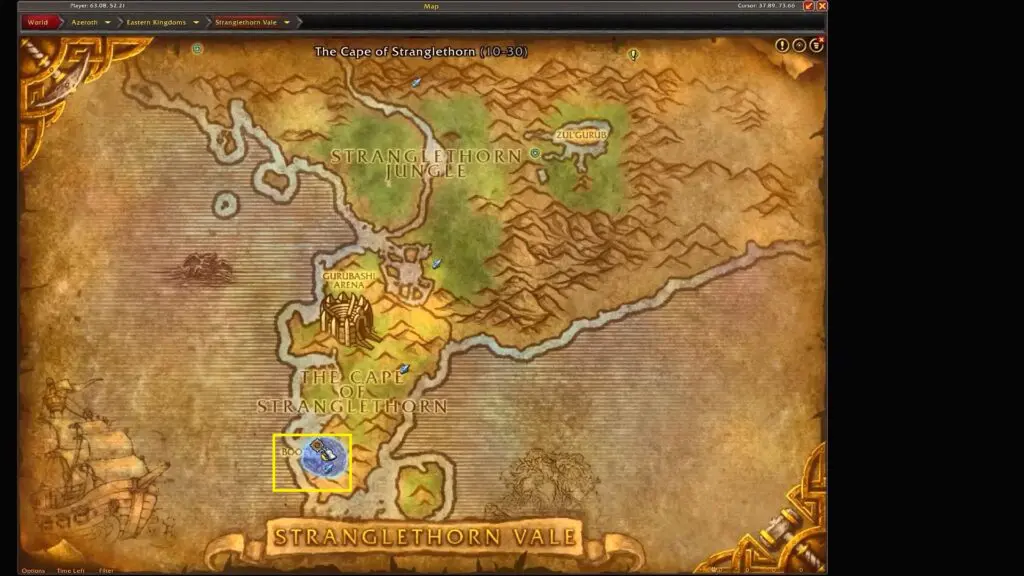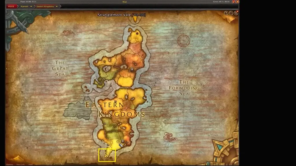 As the quest starts, head to the Stranglethorn Vale in Eastern Kingdoms. Stranglethorn Vale is located in the extreme south of the Eastern Kingdoms.