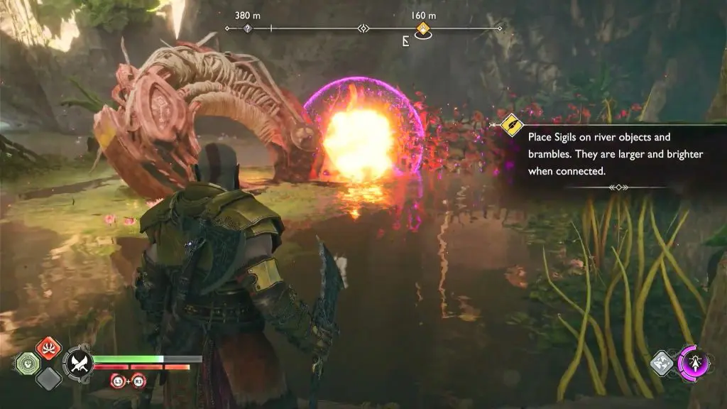 This guide will show you how to complete the objective “Place Sigils on river objects and brambles” after you obtain the ability to use Sigils to destroy the mushroom brambles in God of War Ragnarok released on November 8th, 2022.