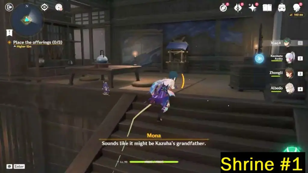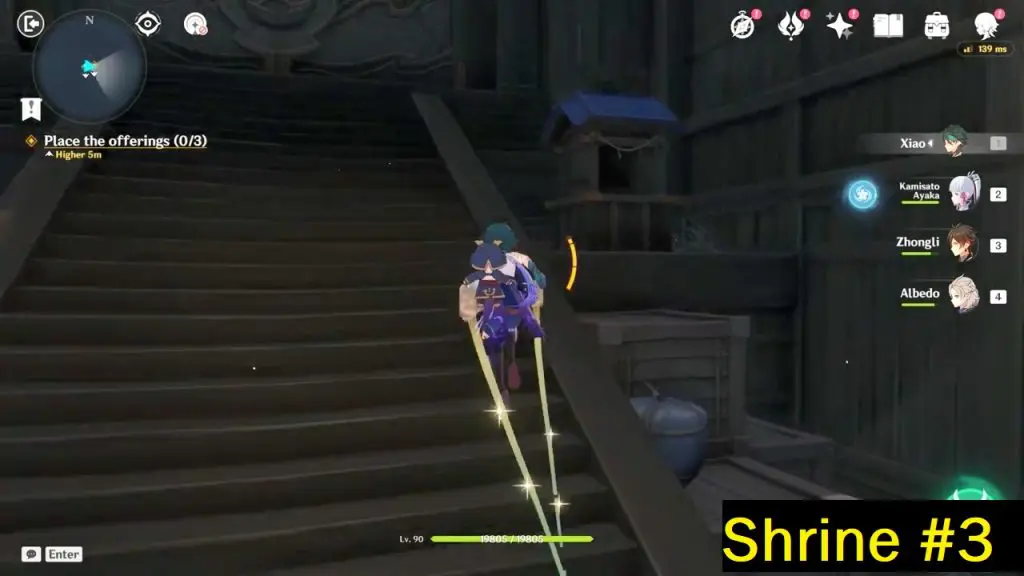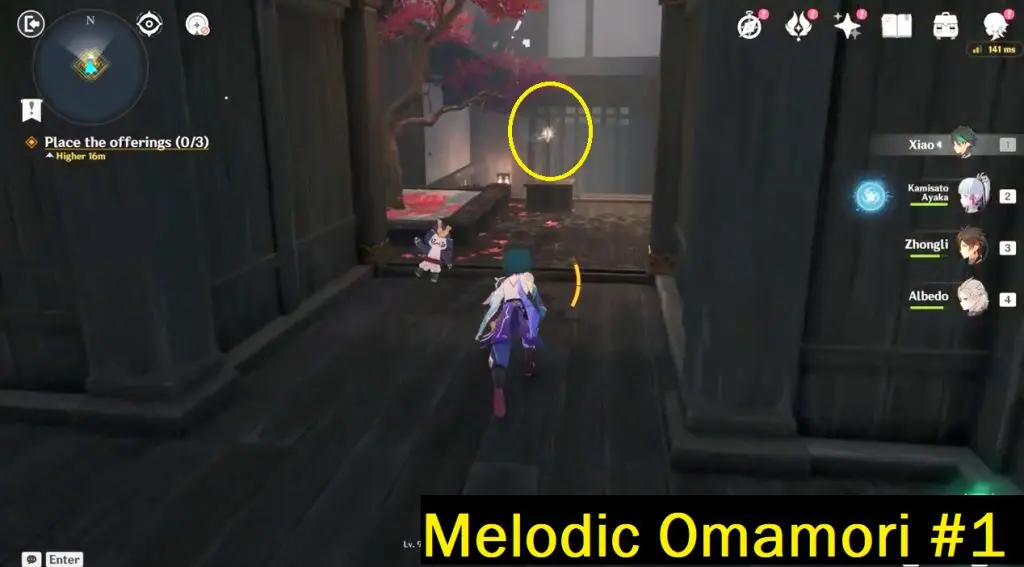 Set the Lever position in the courtyard (if it’s not there) and head inside. Here you have to pick up three Melodic Omamori and offer them at three special shrines.