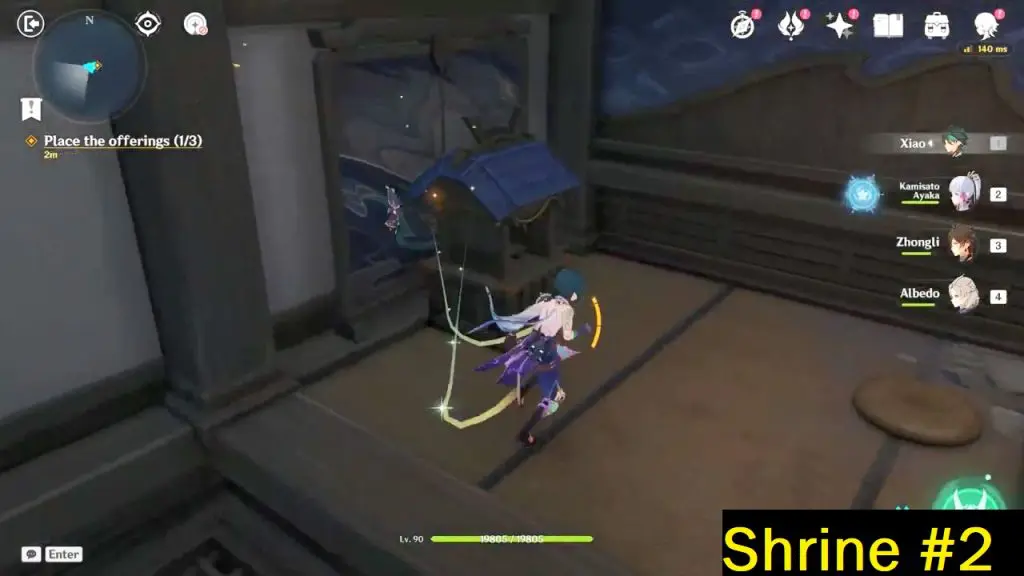 This guide shows you how to complete the objective “Place the offerings (0/3) in the Story Quest “As the Courtyard in Spring Once Appeared” for Day 2 in Golden Apple Archipelago of Genshin Impact 2.8. This is for Domain 1.