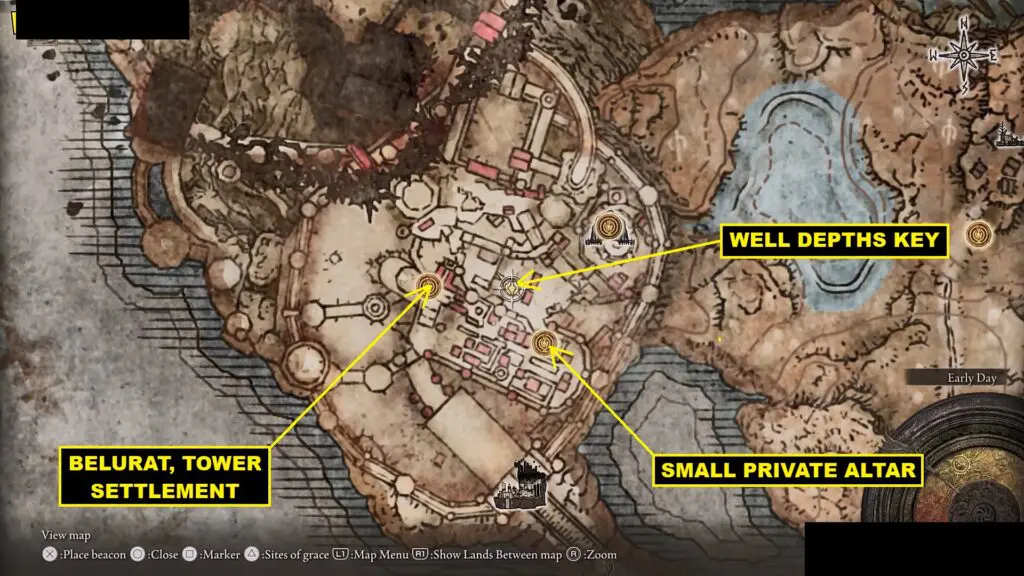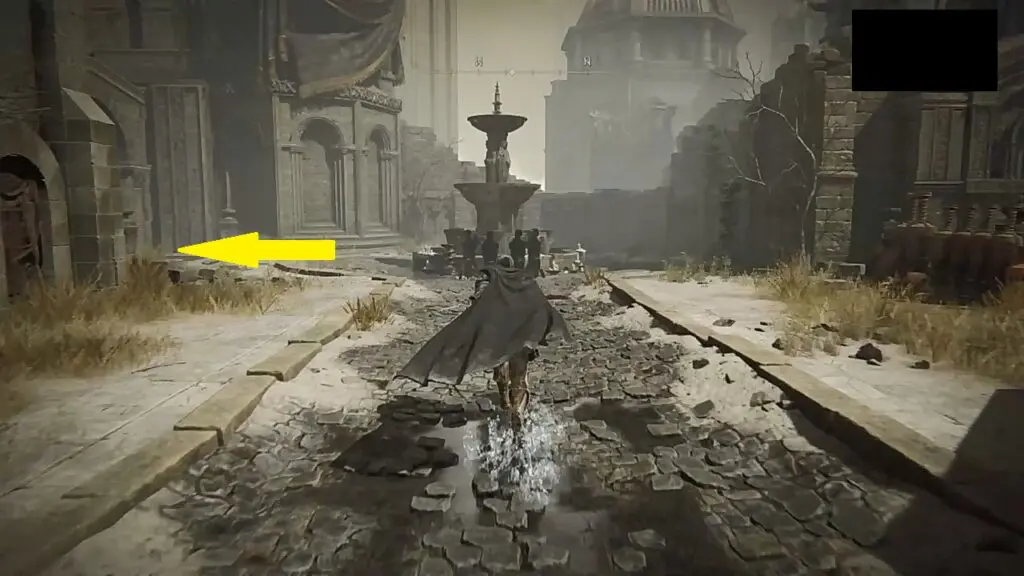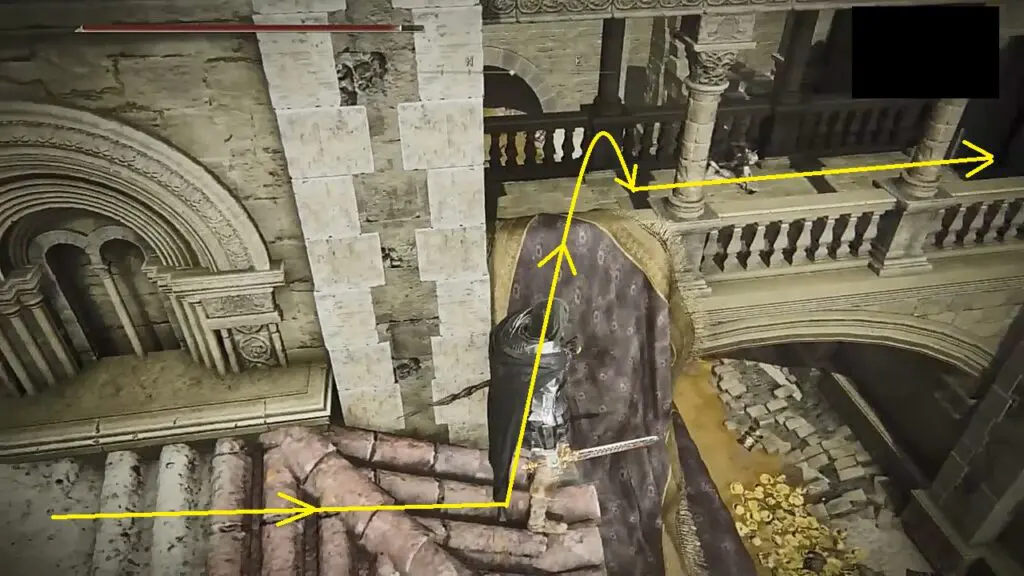 Exit the room from the door next to the Small Private Altar Lost Grace. Then go through the door on the right side to exit the building. Climb up the stairs ahead, then go left and take the narrow path going right as shown in the picture below.