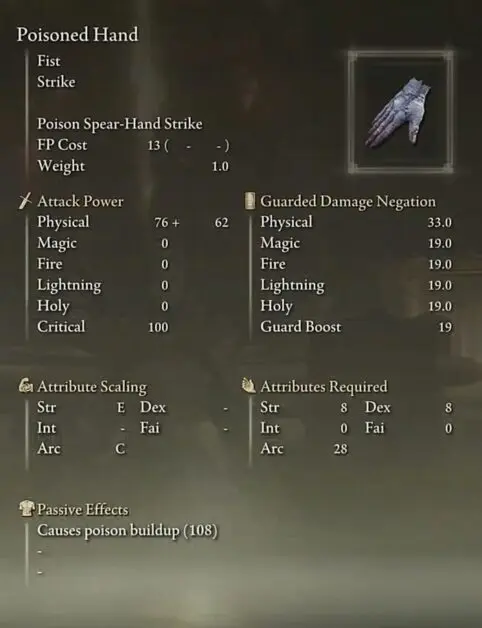 Elden Ring: Poisoned Hand Weapon Location
