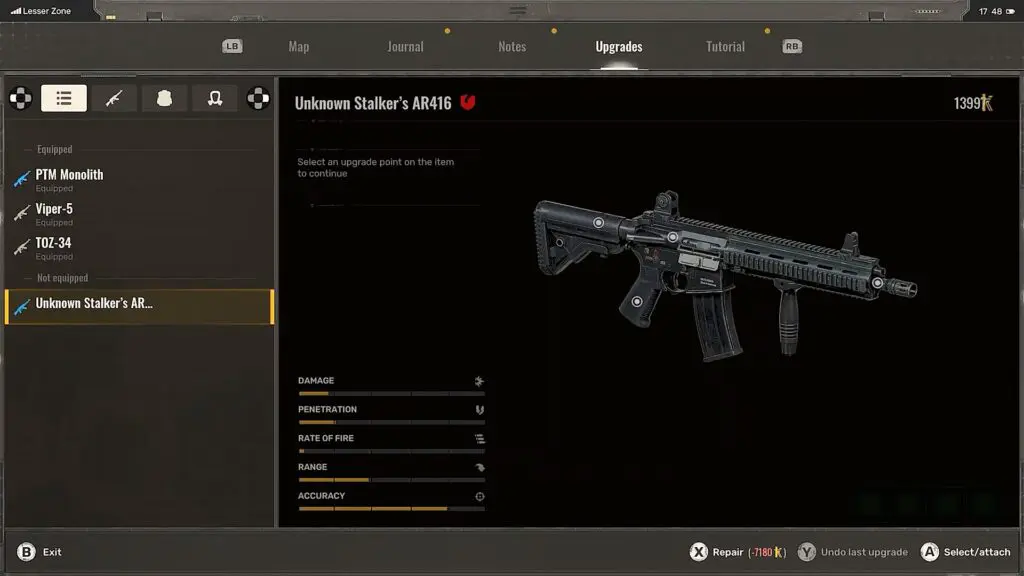 If you give the icon to Pomor, he will give you an AR416 Rifle as shown below. The weapon only has 10% durability though. It takes 7200 coupons to repair it.