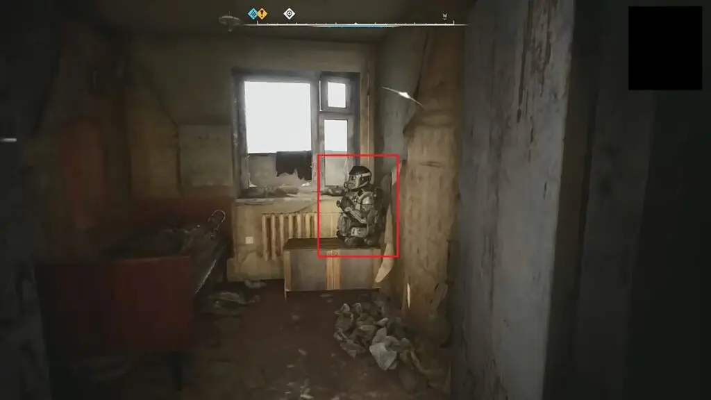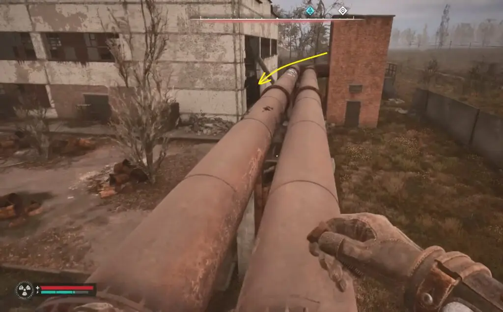 The Operator Exoskeleton is located between Pripyat and Yaniv. To find it, climb the red pipe and jump onto the second floor of the building.