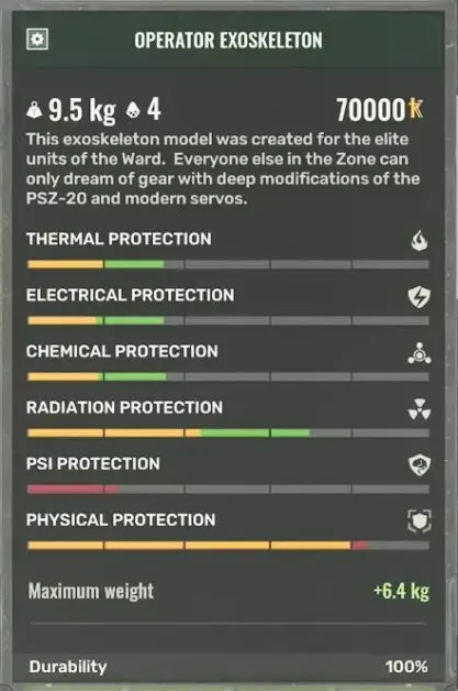 There is one issue with the Exoskeleton armor though, it wouldn’t let you sprint. To be able to sprint, you need to purchase and install a sprint upgrade from the Bolero technician in Prypiat. The upgrade that you need is Hydraulic Amplifiers for Servos.