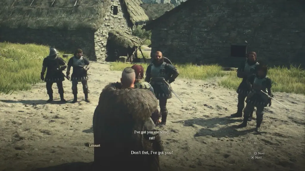 Deliver the swords to Lennart (NPC) inside Ulrika’s house. As you both exit, prepare to defend against the soldiers.