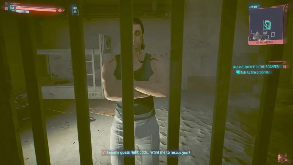 Use the elevator to reach the next floor. Defeat all the enemies and head down some small steps to the right of the elevator. Continue to follow the in-game marker to reach the prisoner cells. In the cell, you will meet the prisoner – Hasan. Speak with him to help him escape the cell.