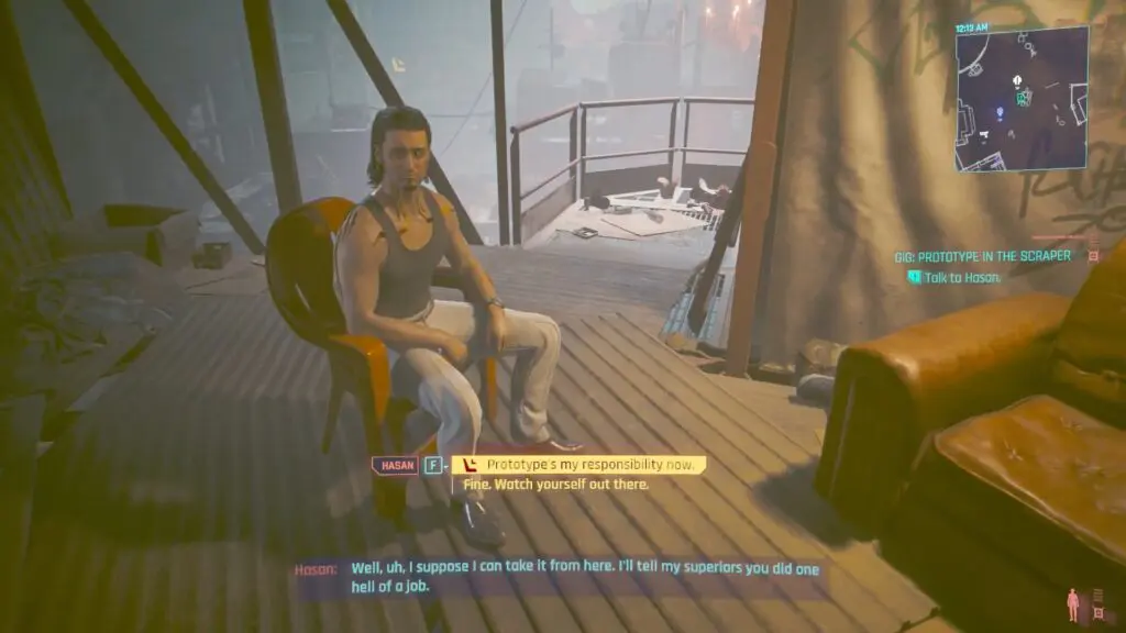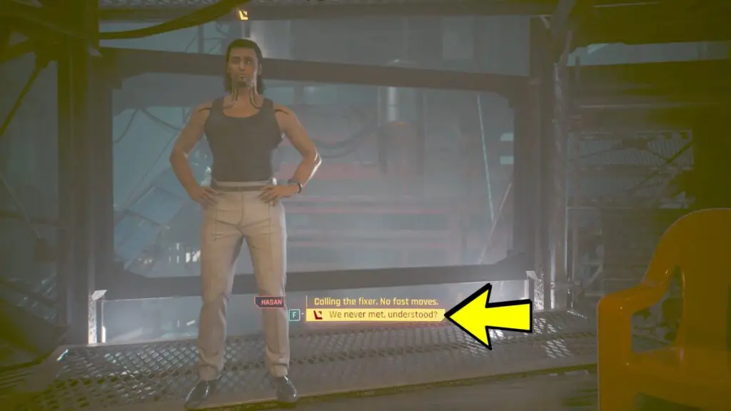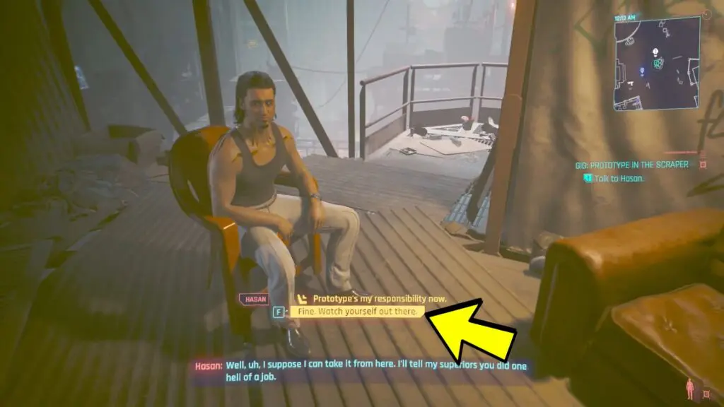 Hasan will convey his appreciation and depart. Subsequently, head to the drop point and inform Mr. Hands that you couldn’t locate the prototype but obtained the schematics. He will mention that Zetatech won’t be pleased but assures you that your compensation will be released. Select below dialogue options below as shown in the images.