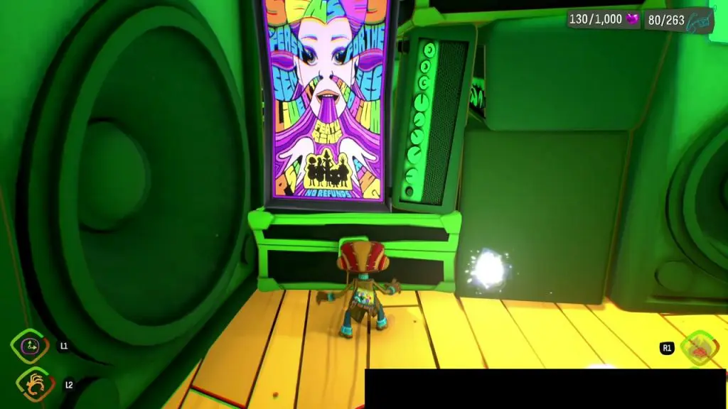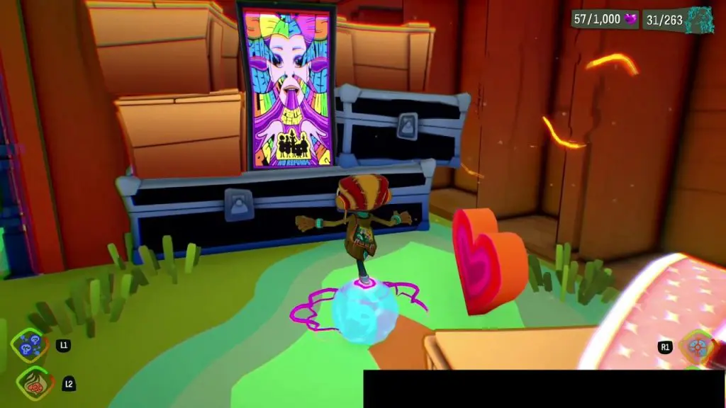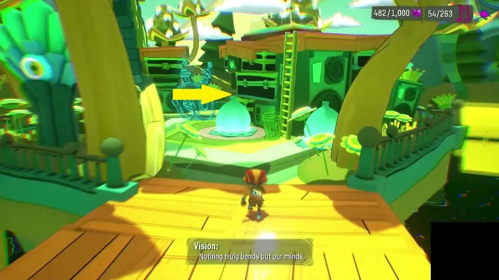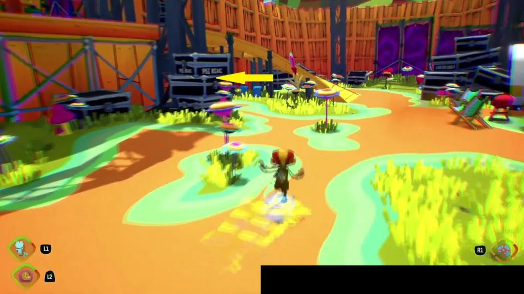 This Half-A-Mind is in the backstage area of PSI King’s Sensorium. Go underneath the stage from the location as shown in the picture below. At the end of the path, you will find a Suitcase. In front of the suitcase, there is a poster. Burn the poster and go inside to collect the Half-A-Mind.