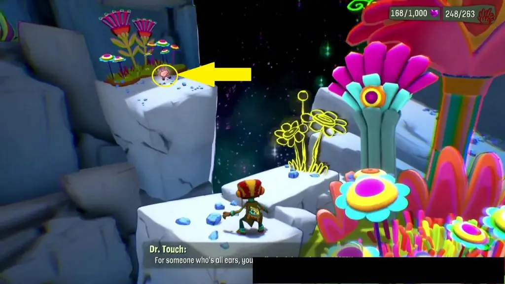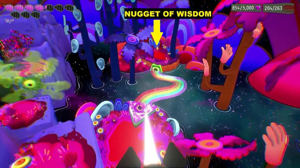 This Nugget of Wisdom is in the area where you reach to get Dr. Touch’s instruments. Right at the starting point, you can see the Nugget of wisdom across the water. Use the spotlight to switch on the rainbow bridge above the water. Cross through the bridge to get the Nugget of Wisdom.