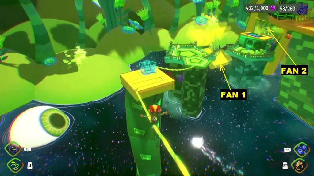 The first Memory Vault is available during the level’s Vision section. You’ll need to cross fast-moving fans after clearing the first bridge of light. Use Timebubble to change the flow of time for fast-moving objects. After passing through two fast-moving fans, you’ll come across a wooden jail with a memory Vault inside. Using the Projection ability, you can enter the jail. Return to the jail once you’ve Projection ability.