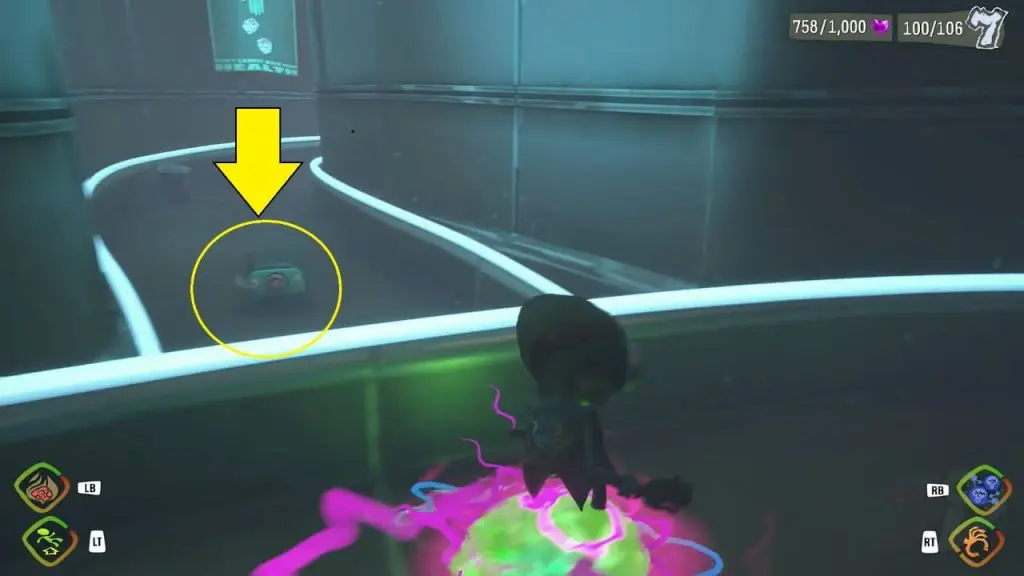 How to visit earlier Brains: Go to the Agents area in Motherlobe to find a Brain Tumbler in Sasha Nein’s lab. You can talk to Sasha or use the Brain Tumbler to get to the Collective Unconscious hub. You’ll have access to any brain you’ve previously visited once you enter here.