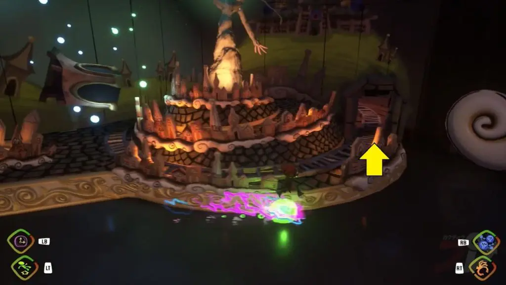 The first Memory Vault is available during the level’s Vision section. You’ll need to cross fast-moving fans after clearing the first bridge of light. Use Timebubble to change the flow of time for fast-moving objects. After passing through two fast-moving fans, you’ll come across a wooden jail with a memory Vault inside. Using the Projection ability, you can enter the jail. Return to the jail once you’ve Projection ability.