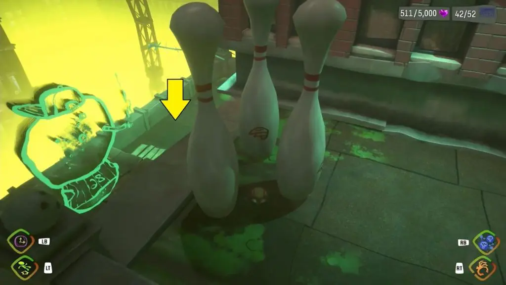 At this level, you will have to ride a bowling ball. Ride the bowling ball past the first bowling pins. After that, follow the path behind the large billboard to find another set of bowling pins. Knockdown pins to reveal the Memory Vault at a lower level.