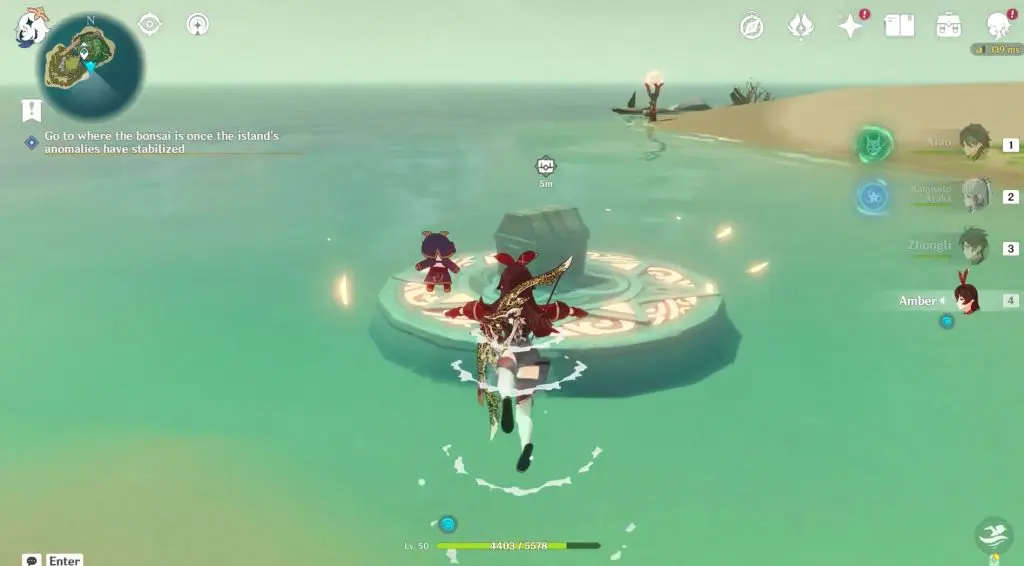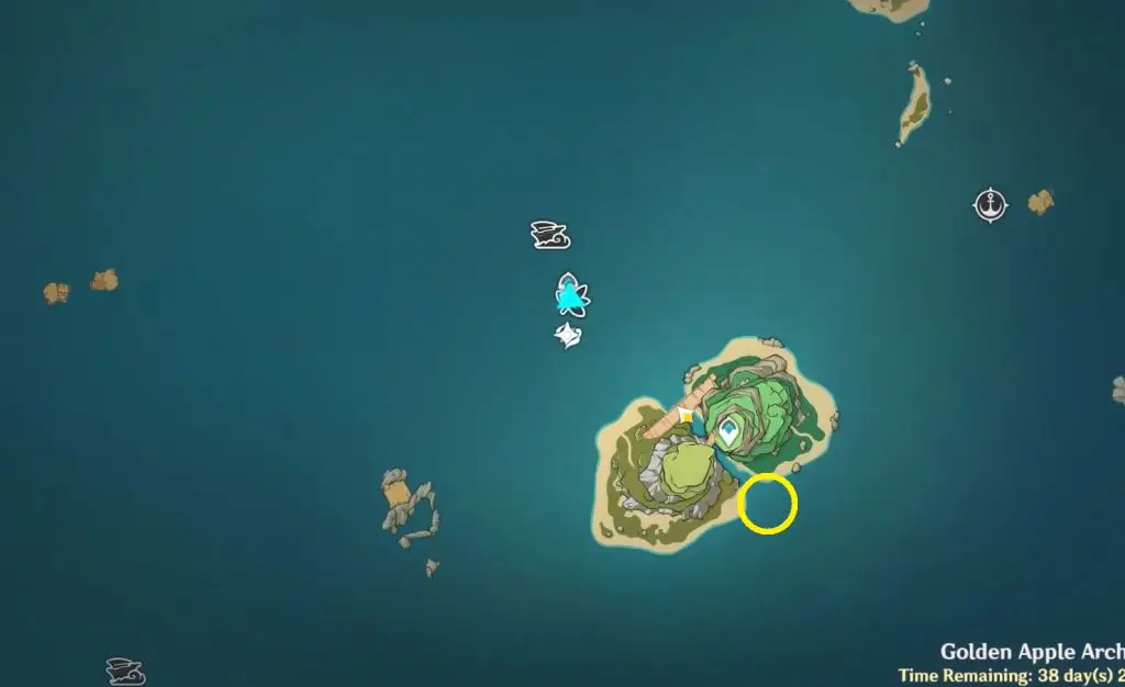 Next, Teleport to the middle of Pudding Isle and drop down to the southern beach of the island. You will find four Torches you need near the water to light up.