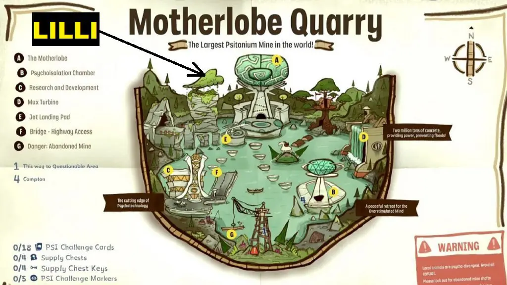 After jumping down, you will reach Quarry. In Quarry, Lilli is at the location marked by an arrow in the picture below. Use the updraft near the Jet landing Pad to go to the upper level. Keep moving ahead until you reach the end of the platform. Then jump on the trampoline and climb up the rocks ahead of it to reach Lili. Talk to Lili to start the quest.