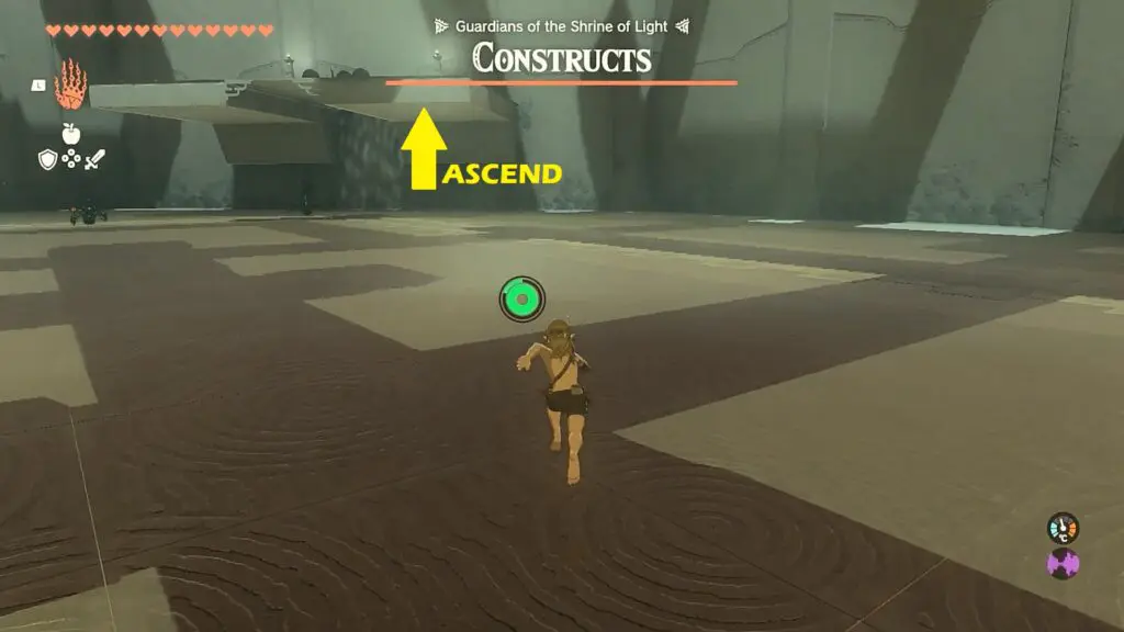 After entering the shrine, go to the opposite end of the room. Use the ascend ability to reach the top of the platform there as shown in the picture below.
