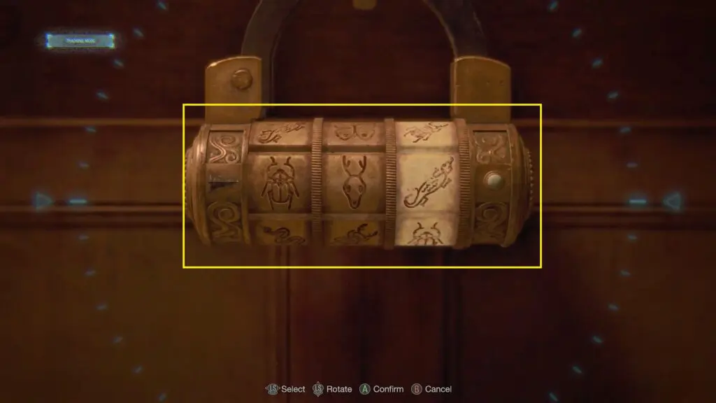 Note the symbols must be selected from left to right: in other words, the first exhibit is the symbol on the left, the second exhibit is the symbol in the middle, and the third exhibit is the symbol on the right side of the lock.