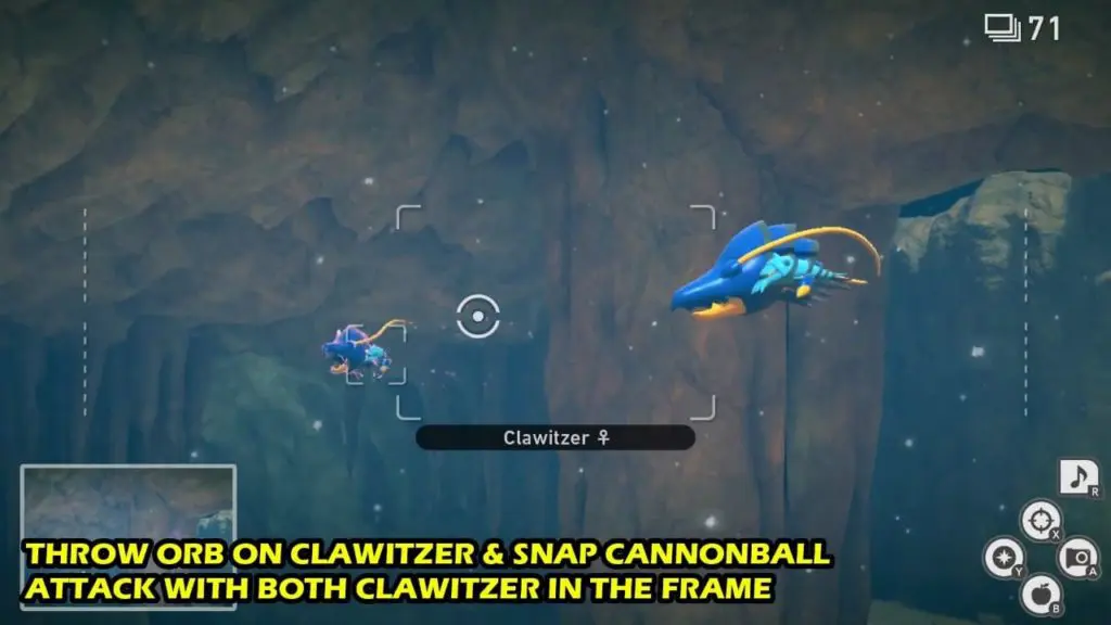 Ready Aim Fire Request: New Pokemon Snap (How to Guide) Post published:May 4, 2021 Post category:New Pokemon Snap Clawitzer 4 Star Pose: How to Clear Ready, Aim, Fire! Request Walkthrough The request is to take a 4 Star Pose Clawitzer.Guide:Go to Lental Seafloor (undersea).Once you descend and enter the cave in the main course, you’ll encounter 2 Clawitzer preparings to duel.Throw an Illumina orb at 1 of them as it’s about to shoot a cannonball.Take a photo of the cannonball attack (4-star pose) with both Clawitzer in the frame. RELATED: New Pokemon Guide & Walkthrough