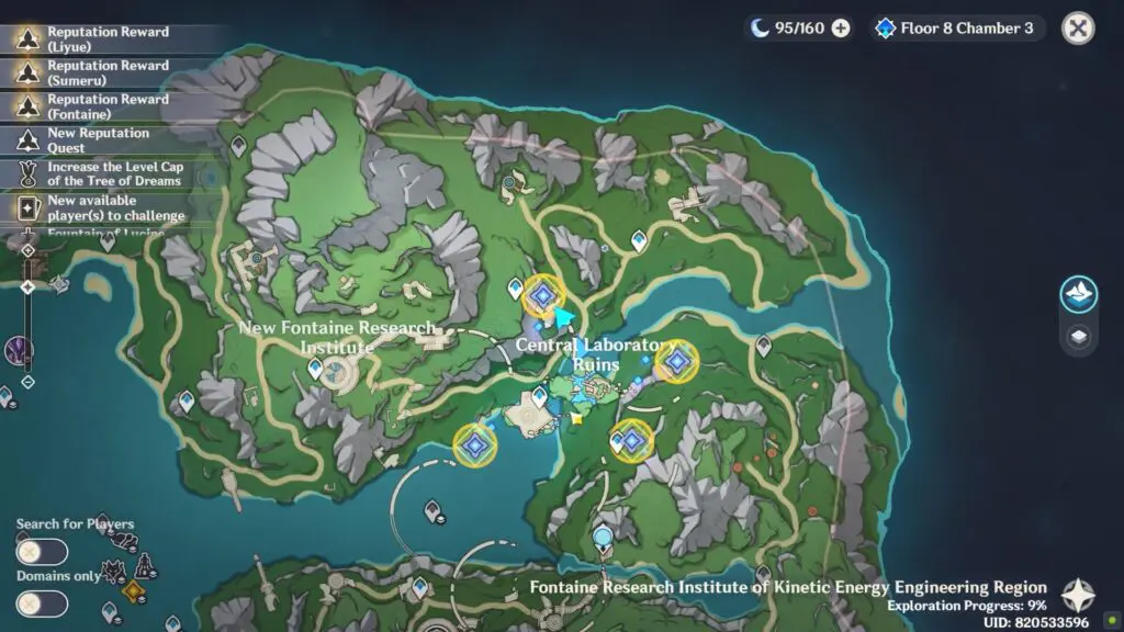 There are 4 condensing components you need to recover inside 4 different water buildings. These are found around the Central Laboratory Ruins of the Fontaine Research Institute Region.